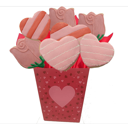 Custom Photo Hearts Cookie Bouquet- 3 Photo Cookies 4 Heart Cookies