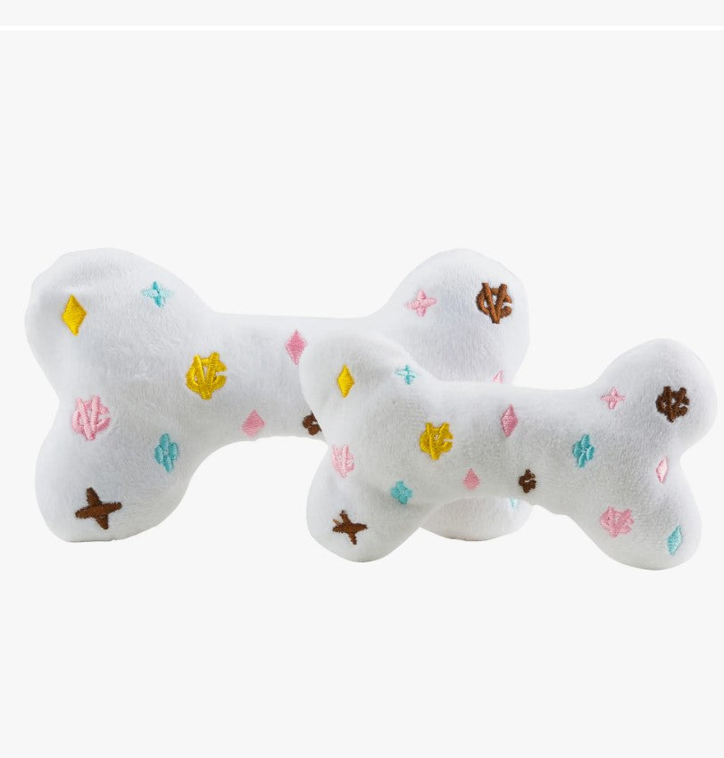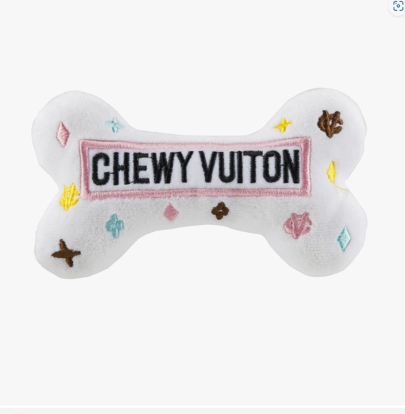 This Chewy Vuiton Bone Toy is presented in iconic white with tasteful accents dotting the plush exterior, letting your decadent doggy play in extravagance!